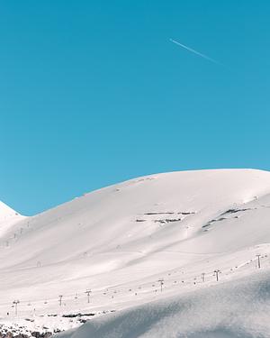 The exhilarating beauty of a ski slope from the Cedars of God, set against a backdrop of a clear, blue sky. The snow-covered slope glistens in the sunlight, inviting adventure and excitement. This image conveys a sense of freedom and joy, as skiers embrace the thrill of the slopes while surrounded by the natural beauty of the Lebanese mountains.